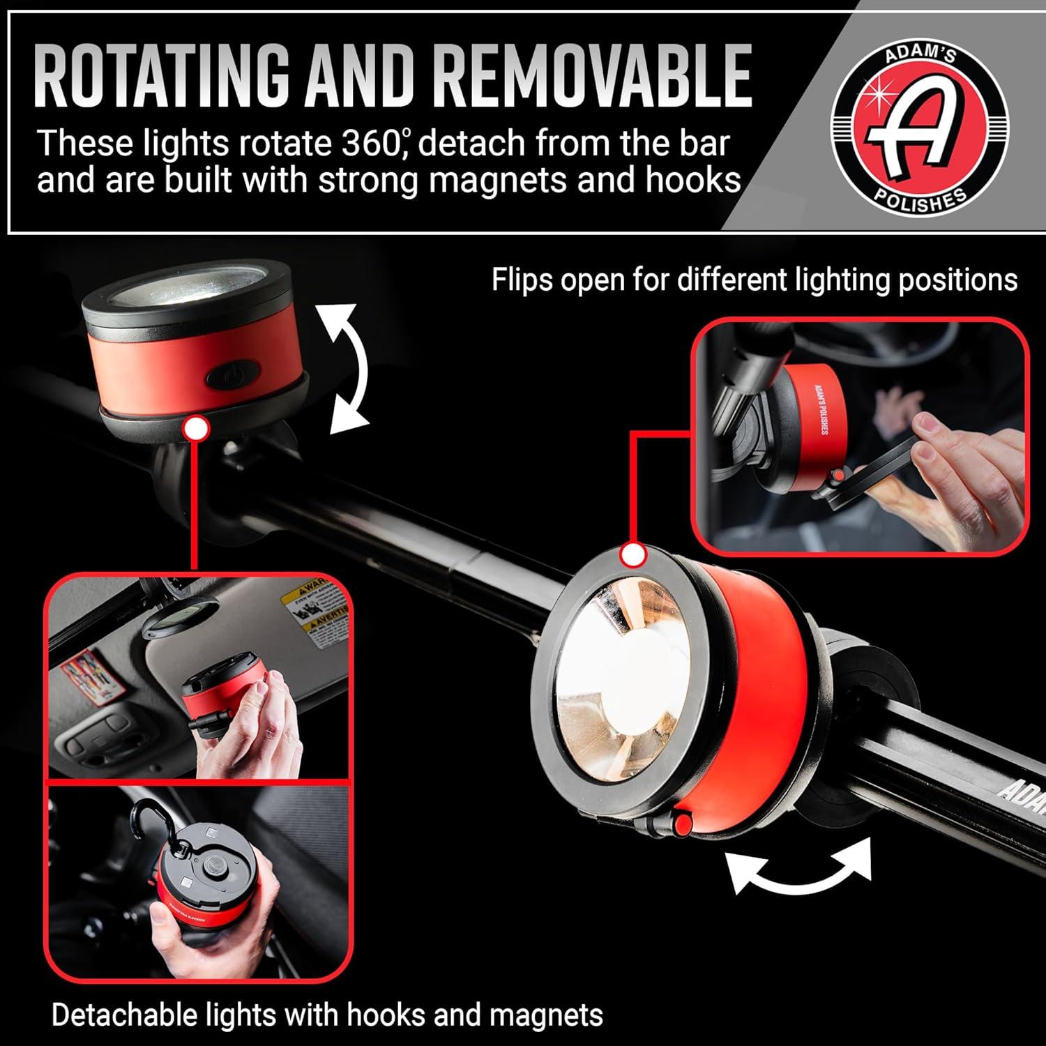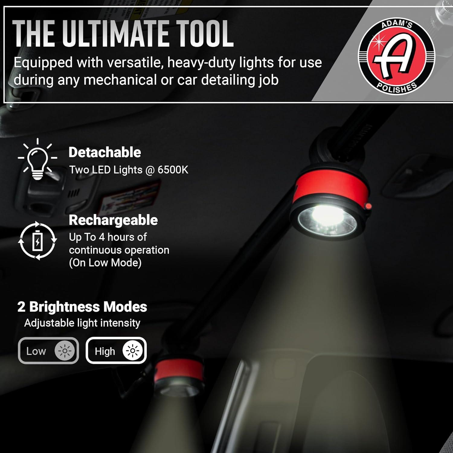 BRIGHT & PORTABLE: Two detachable 6500K LED lights make it easy to detail any part of your vehicle with ease.