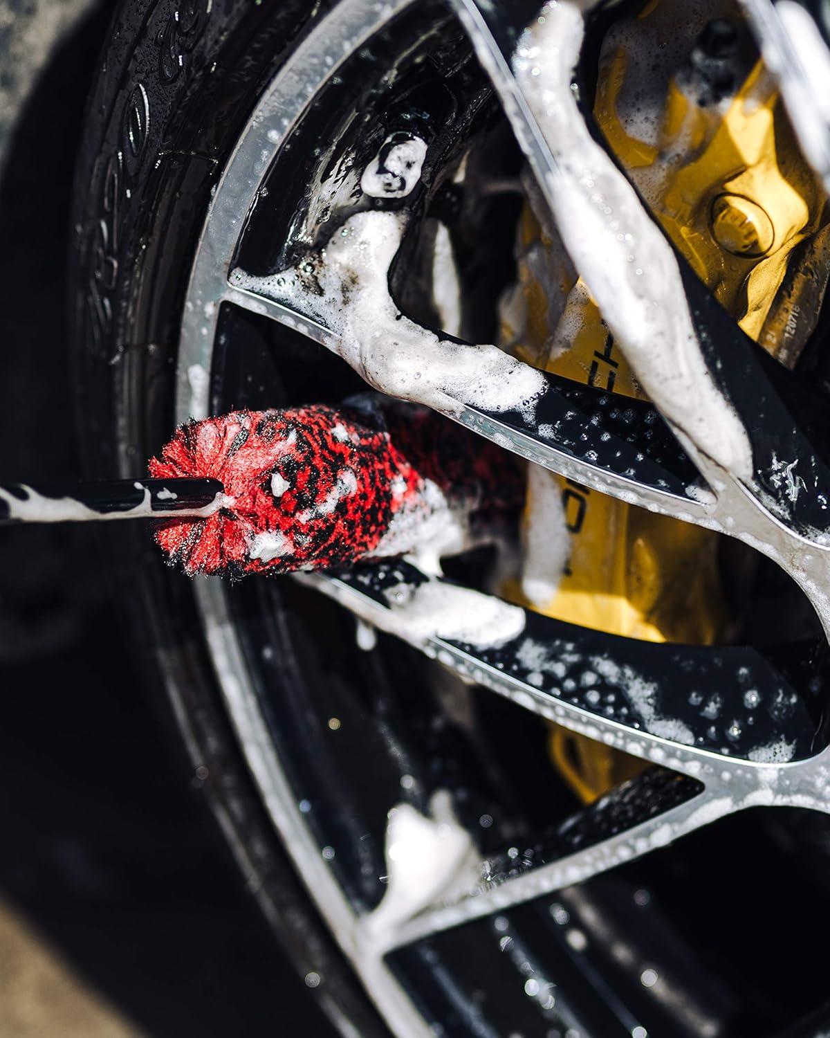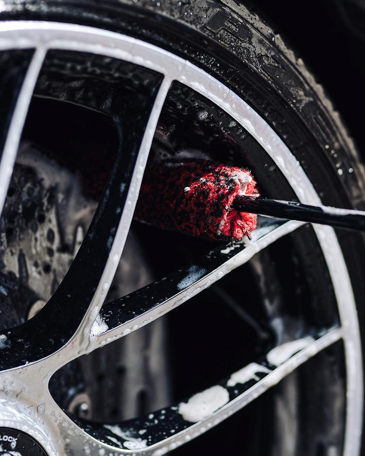 ✅ SAFE ON ALL WHEEL FINISHES – The Adam's Barrel Brush and the Adam's Small Barrel Brush are made from 100% polypropylene black and red wool carpet fiber, that is recyclable and chemical resistant. The fiber blend is incredibly soft yet dense. When paired with Adam’s Wheel Cleaner, you get the ultimate wheel cleaning combination. If you need to clean the face of your rims, use Adam’s Wheel Brush or 5 Finger Wash Mitt.