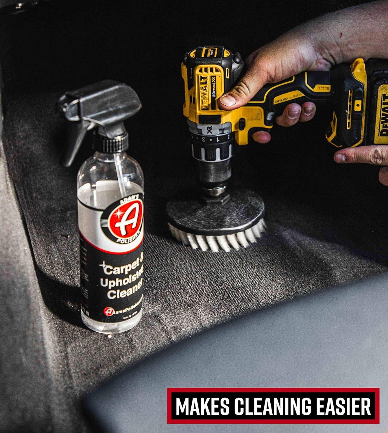 ✅ SAFELY CLEAN & AGITATES DIRT FROM NON-POROUS & POROUS SURFACES – Adam’s Carpet Drill Brush is an essential detailing tool for any weekend hobbyist, professionals or car care enthusiast. This interior cleaning accessory gives you the “elbow grease” you need to remove tough stains, soils, and impacted dirt without damaging your hands or interior components.