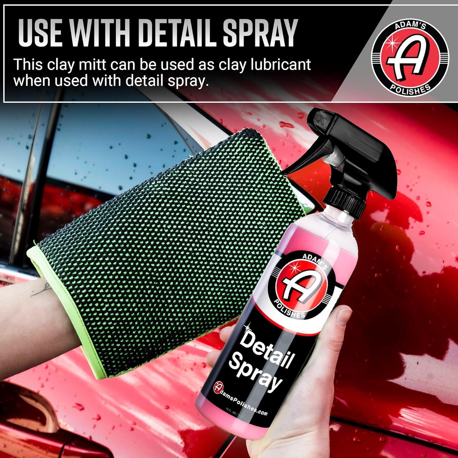 ✅ BEST USED WITH DETAIL SPRAY! – Using the Adam’s Detail Spray is still the preferred method during a claying process, which acts as a clay lubricant, drying aid, and as a quick detailer to a quickly boost car polishes! Adam's Detail Spray provides a slick surface for the mitt to glide smooth with minimal damage or marring to the clear coat. This clay mitt can be used on paint, glass or windows, plastic wheels, and chrome.