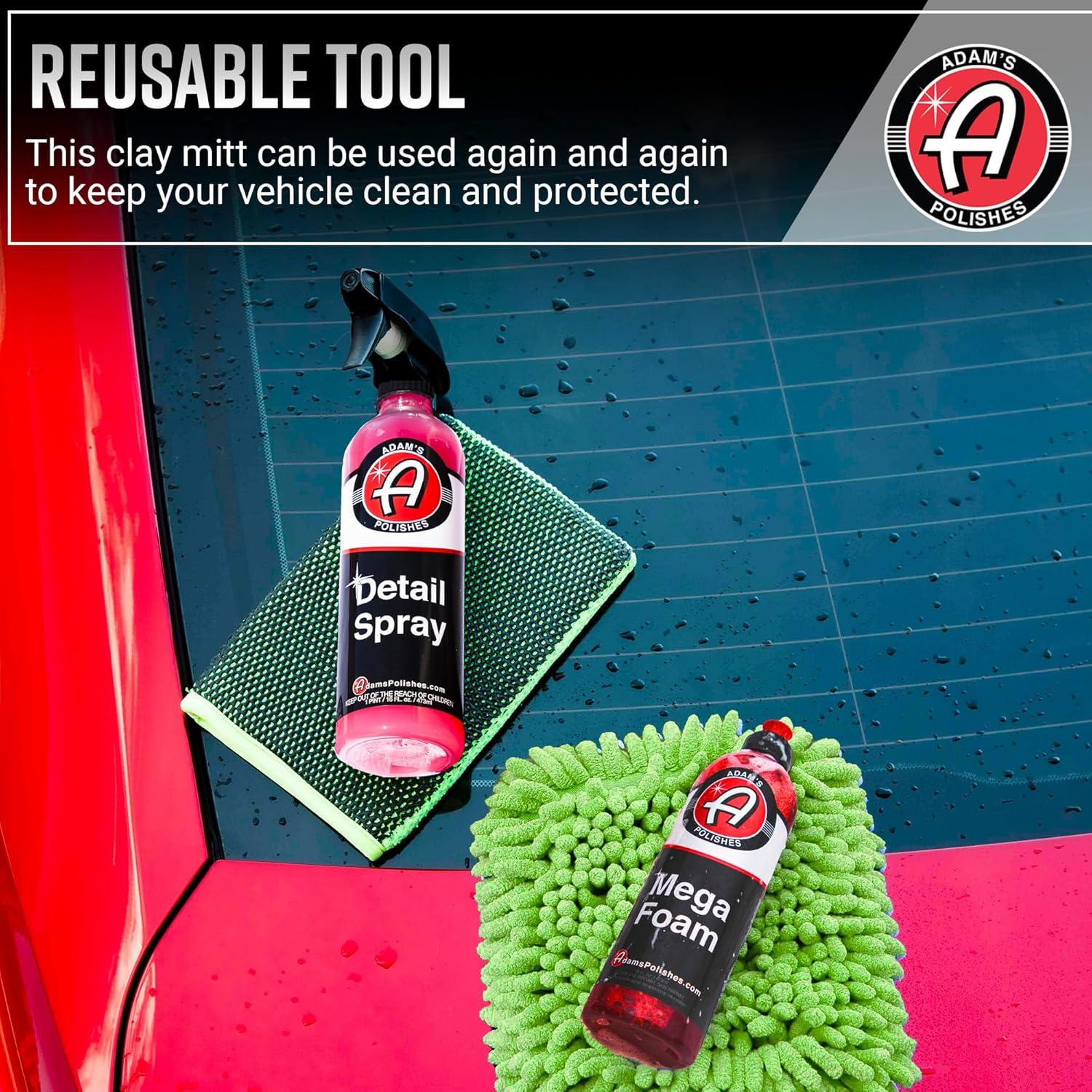 Adam’s Polishes Clay Mitt – Medium Grade Clay Bar Infused Mitt | Car Detailing Glove Quickly Removes Debris from Your Paint, Glass, Wheels, & More(Green – Kit)