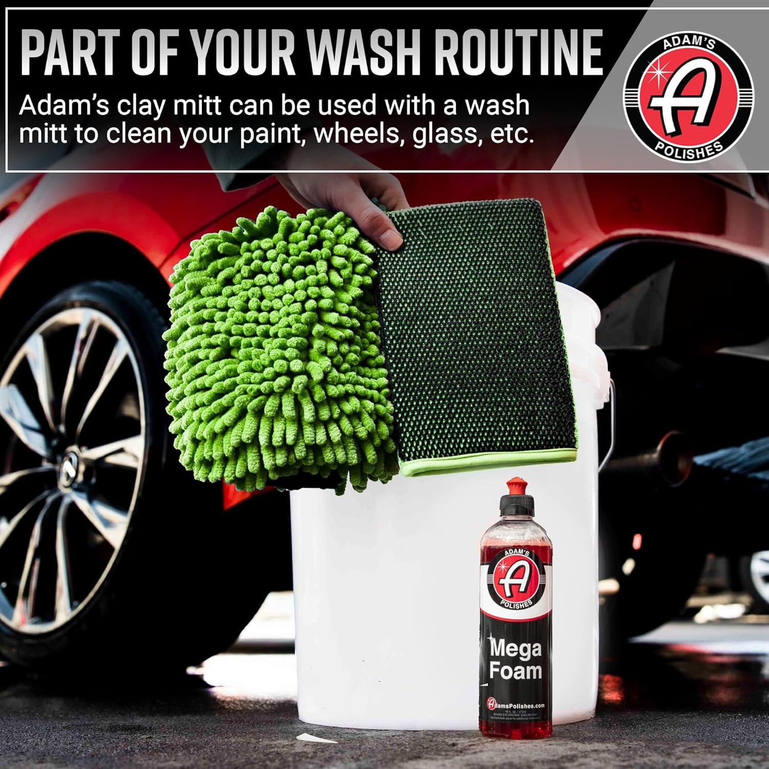 Adam's Polishes Clay Mitt - Medium Grade Clay Bar Infused Mitt | Car Detailing Glove Quickly Removes Debris from Your Paint, Glass, Wheels, & More(Green - Kit)