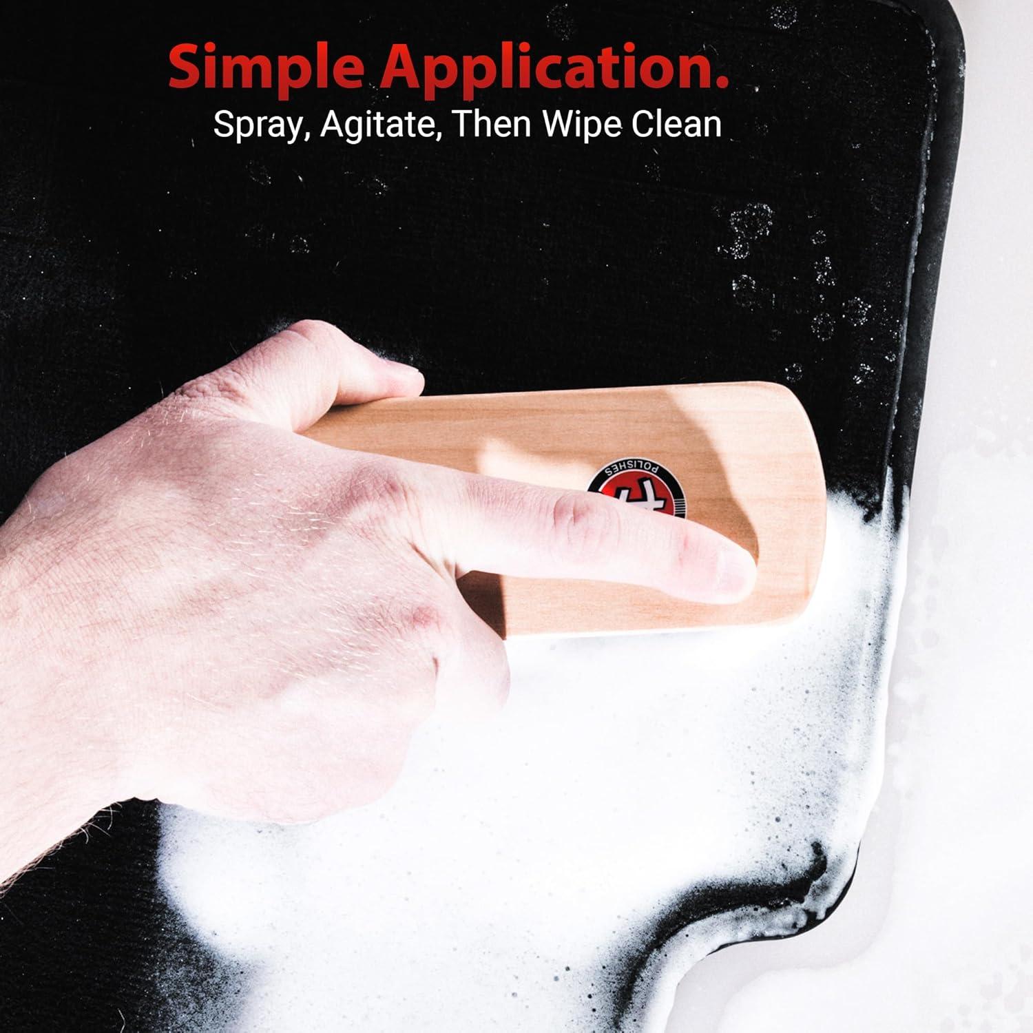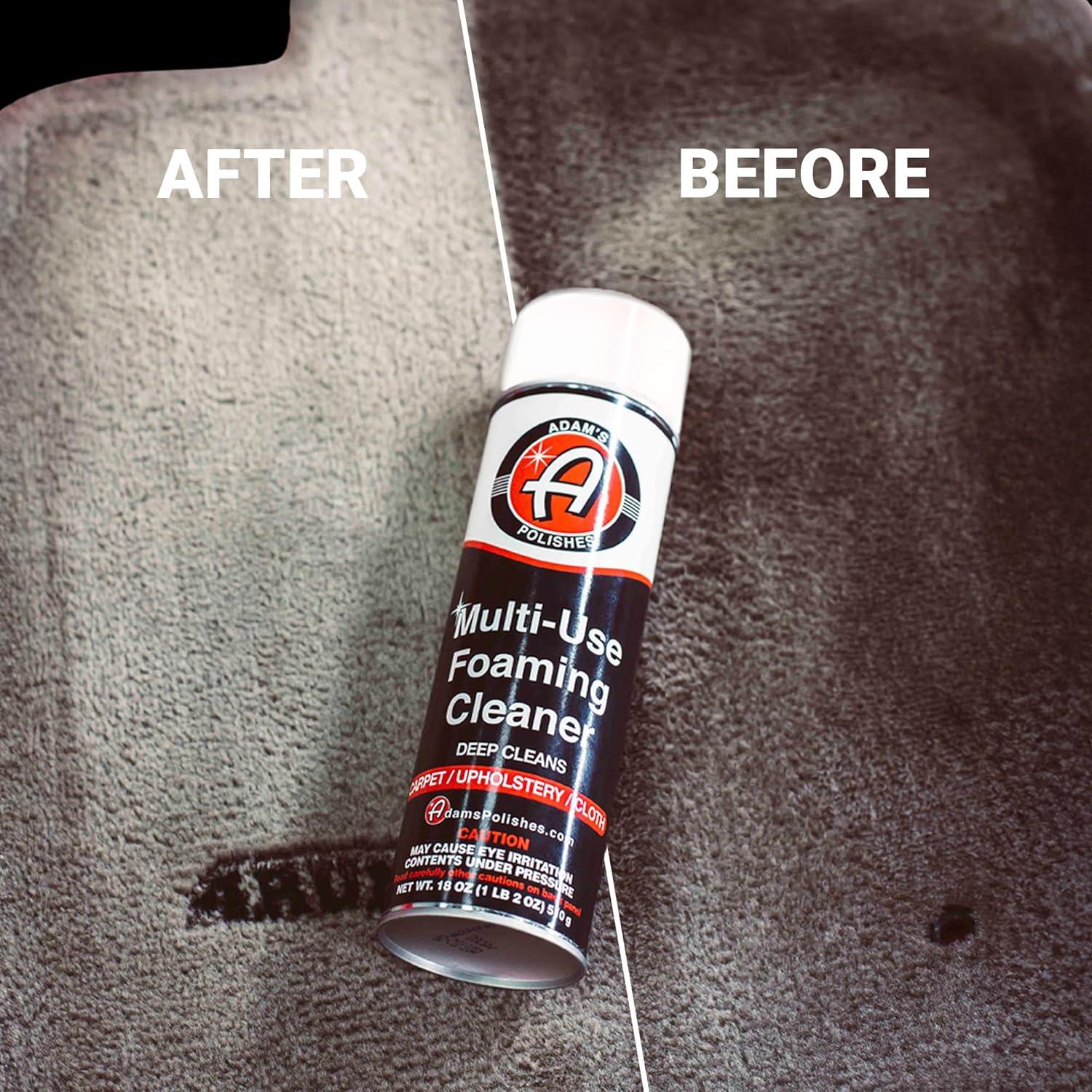 Powerful spot-cleaning foaming formula to release ground-in dirt, spots, and spills in carpet, floor mats, and upholstery. Sometimes you need to deep clean tough spots on your vehicle's carpet floor or on a cloth or upholstered seat, door panel insert, or other upholstered areas of your vehicle's interior cabin. Adam's Multi-Use Foaming Cleaner is a powerful cleaner to focus on spots and stains where our Carpet & Upholstery Cleaner may have more difficulty removing some heavier soiling. Foaming Formula for Simple and Fast Cleaning Safe on Carpet, Cloth, and Velour Great for Around the House, too Made In The USA  Use of this foaming cleaner is easy! Simply spray a small amount of the foaming cleaner onto the affected area, approximately 1 foot away from the area if possible. Make sure the area is well-ventilated with the doors open or windows down. Next, agitate the area with a water-dampened Edgeless Utility Towel, Interior Scrubbing Mitt, or Cockpit Brush, fully working the cleaner into the surface until the foam disappears. Then wipe clean in one direction with a dry Edgeless Utility Towel to raise the nap of the carpet or upholstery, and allow to dry for a few hours. After the area is dry, vacuum if necessary to remove any dried up cleaner and loosened dirt particles. Common Sense Warning: Test in a small area first for color fastness. Do NOT use this product on Alcantara or suede surfaces. For cleaning those materials, use the Adam's Cockpit Brush to periodically brush and “lift” the material for a like-new appearance. If brushing does not suffice, very lightly spray Adam's Carpet & Upholstery Cleaner onto an Edgeless Utility Towel, then gently wipe the Alcantara or suede area with the towel.