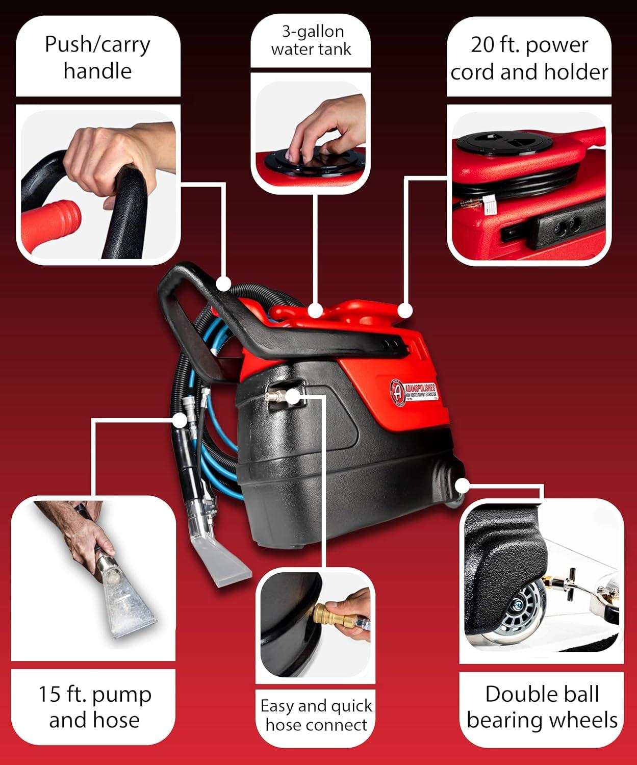 imageAdams Polishes NonHeated Carpet Extractor Powerful Spot and Upholstery Cleaner Clear Hand Tool 15 Foot Hose Easy Dirt and Spot Removal for Vehicles