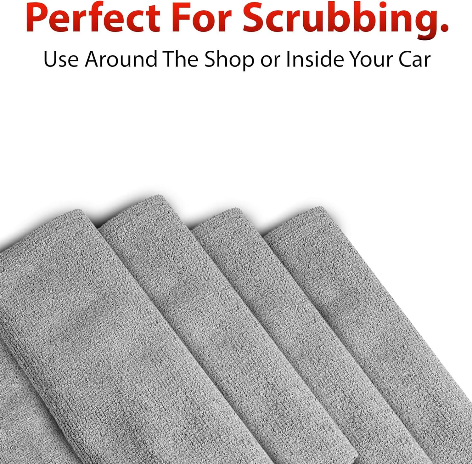✅ 200 GSM MICROFIBER MATERIAL, 16″ X 16″ – Each towel in this pack is made of high-quality 200 GSM microfiber material. This material is known for its superior absorbency, softness, and durability. Measuring at 16″ X 16″, our shop towels have plenty of surface area to attack any job.