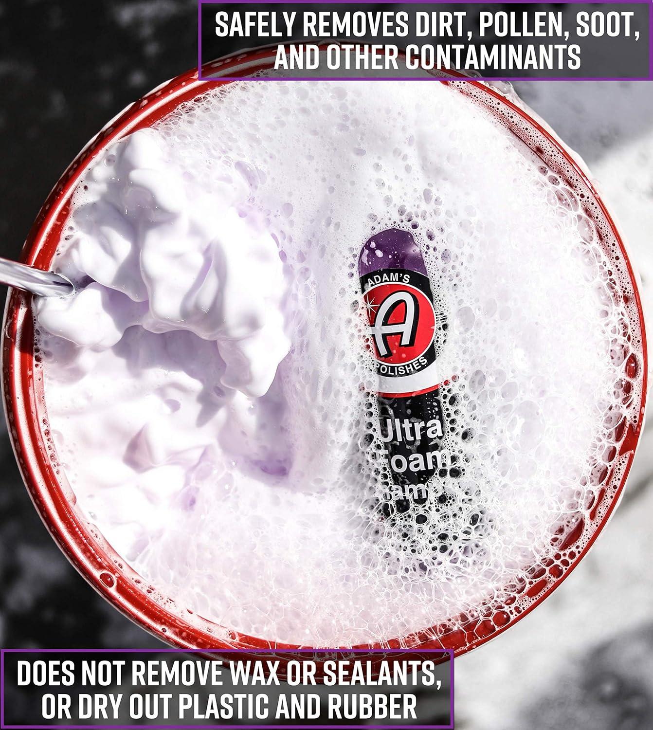 ✅ CREATES A HUGE AMOUNT OF THICK, LUBRICATING FOAM FOR FOAM CANNONS! Adam’s Ultra Foam Shampoo is designed for your foam gun or foam cannon providing the maximum amount of suds necessary to clean your vehicle without the chance of inducing scratches! With 4-times the normal concentration of our Car Shampoo, this car wash soap provides the most chemically advanced, foaming capability for your routine washes.