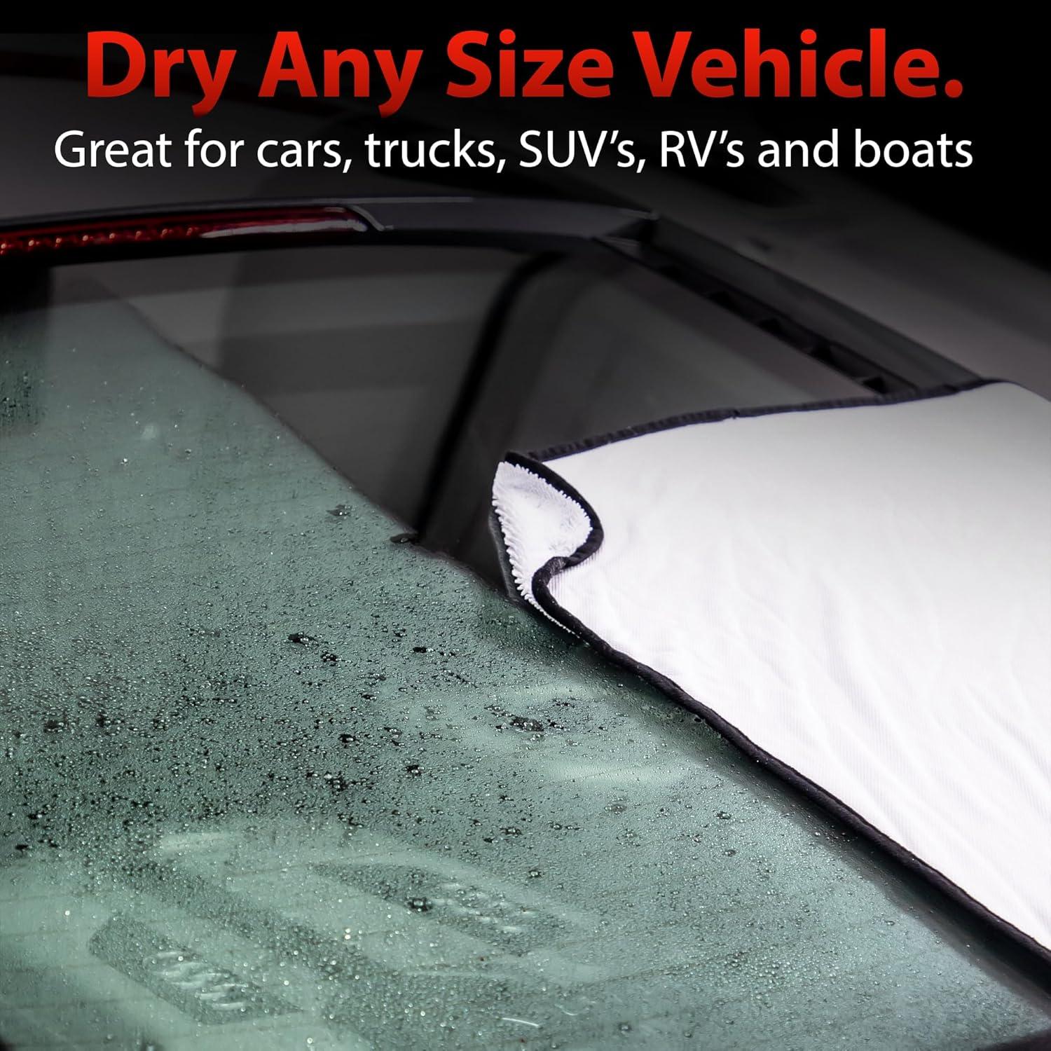✅ A SAFE AND & EFFORTLESS WAY TO DRY YOUR CAR – This large slab of microfiber can absorb over a gallon of water and dry an entire car by itself. Think of the towel like a massive drying blanket for your car with premium silk-banding along all four edges. Drying your car with this towel is a breeze, with proven effective results, time after time.