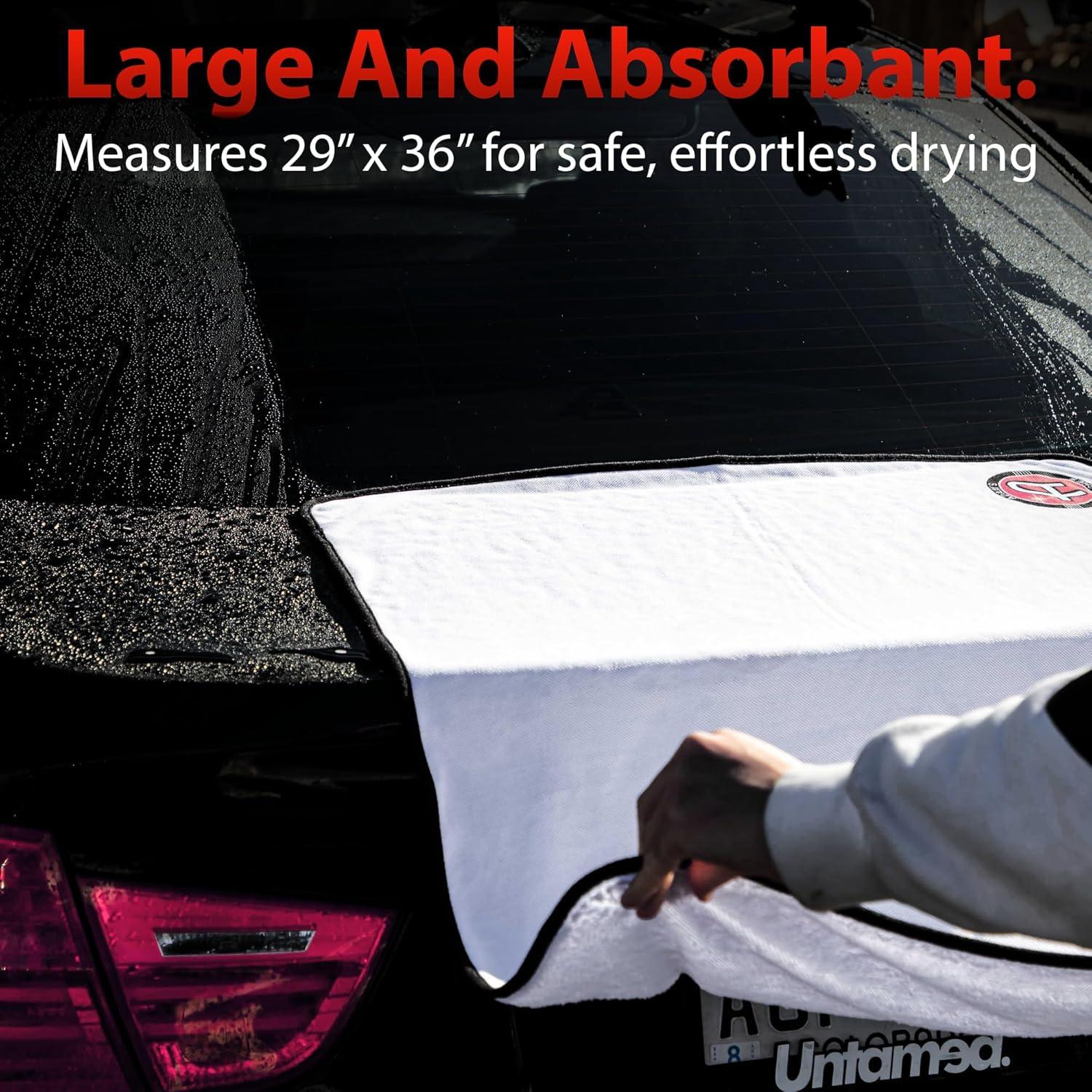 ✅ A SAFE AND & EFFORTLESS WAY TO DRY YOUR CAR – This large slab of microfiber can absorb over a gallon of water and dry an entire car by itself. Think of the towel like a massive drying blanket for your car with premium silk-banding along all four edges. Drying your car with this towel is a breeze, with proven effective results, time after time.