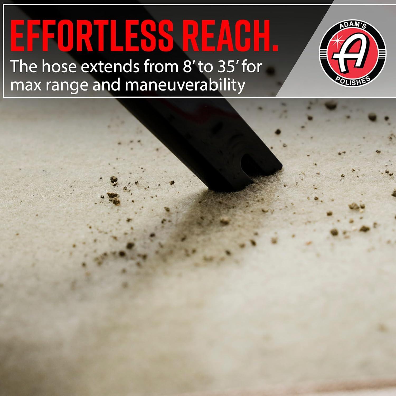 ✅ 8'-35' Stretching Hose – Whether you're tackling the interior upholstery, navigating around seats, or reaching under car seats, this hose ensures a hassle-free experience. This flexible hose offers an impressive range from 8 to 35 feet, allowing you to effortlessly reach every nook and cranny of your vehicle. When finished, the hose shrinks down to just 8 feet for easy, compact storage.