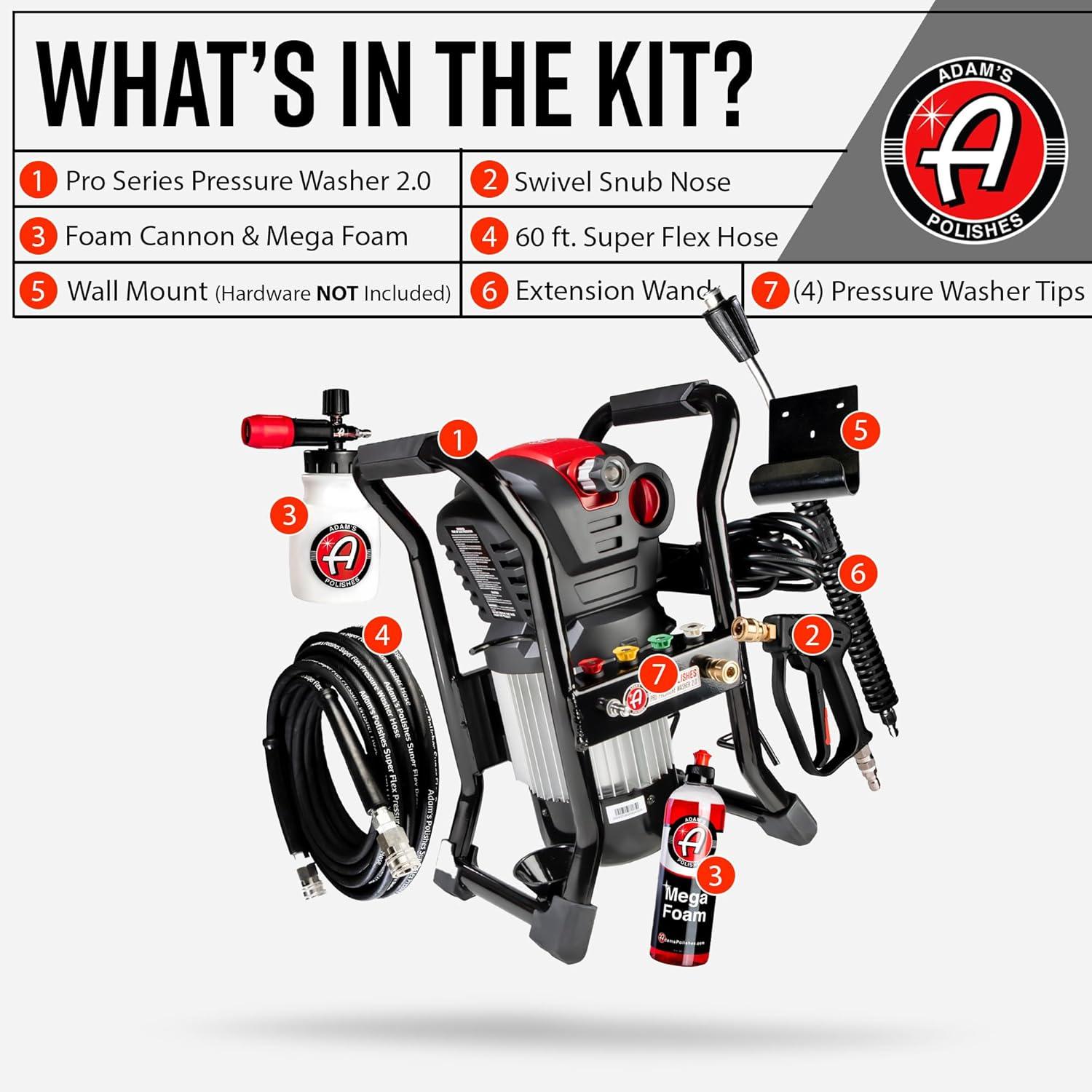 Adam's Pro Series Electric Pressure Washer 2.0 - Professional Powerful Detailing Car Washing Pressure Sprayer That Includes Snub Nose, Wall Mount & Pressure Washer Tips | 1200 PSI & 1.76 Operating GPM(Pro Series 2.0 - Kit)