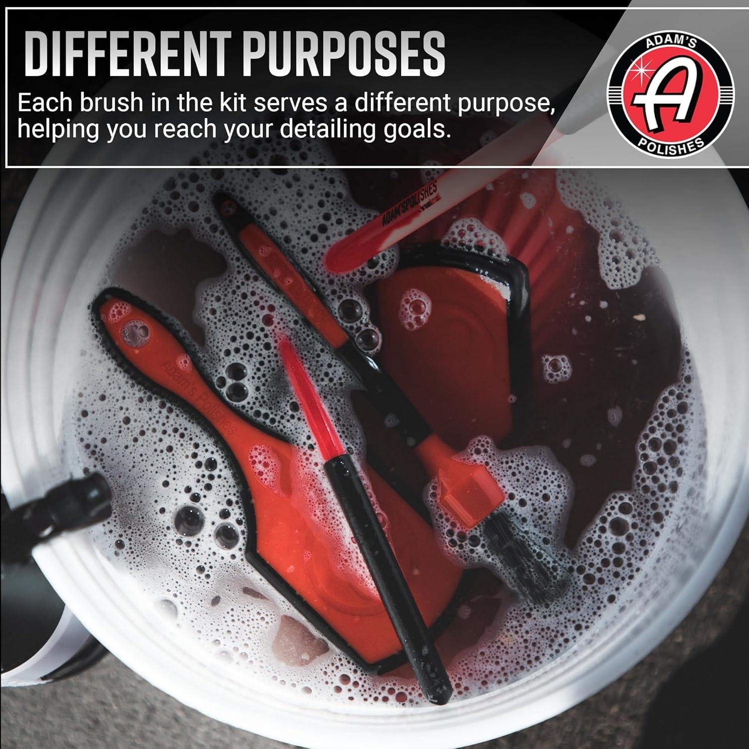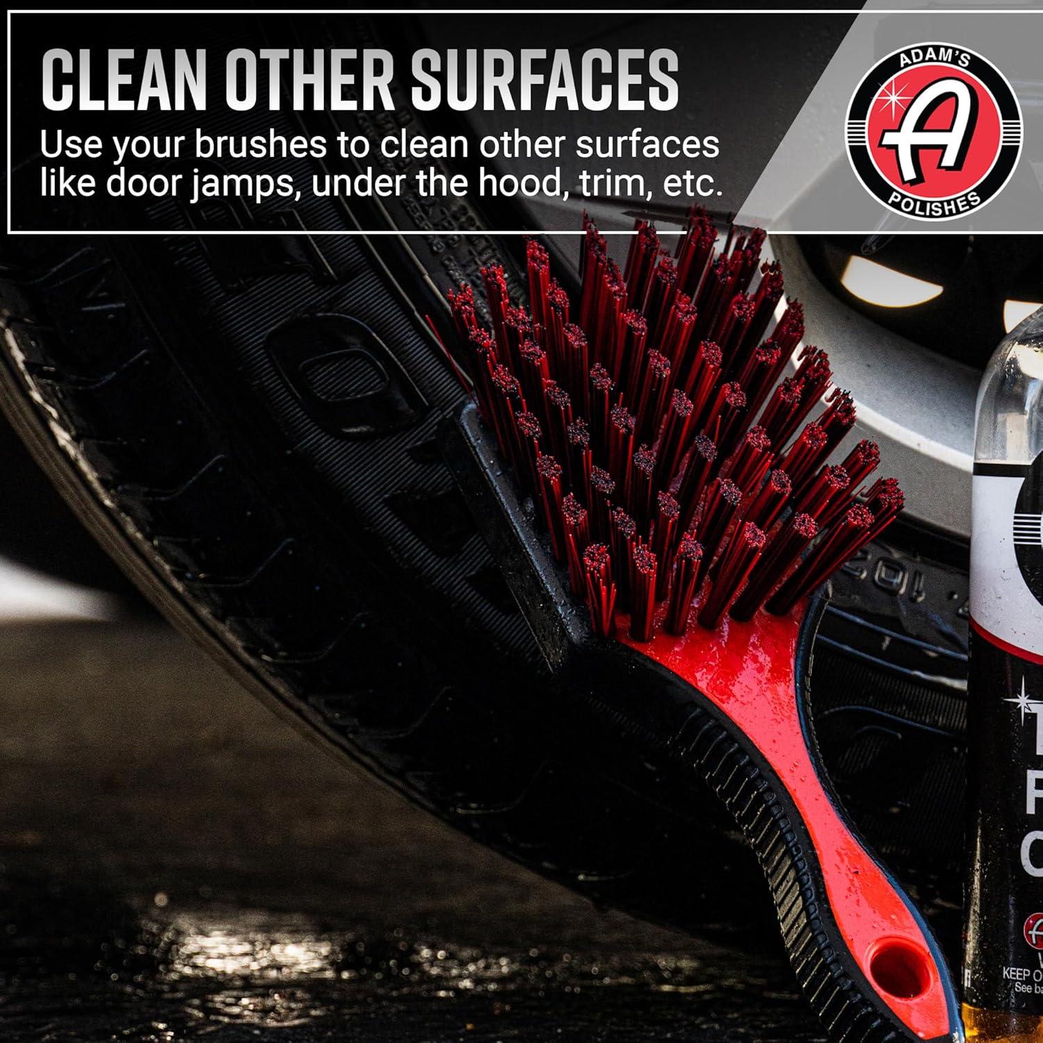 Adam's Wheel & Tire Brush Kit (3-Item) - Includes Wheel Brush, Tire Brush & Barrel Brush for Cleaning Rubber, Plastic, Chrome, Metal, Aluminum, Rim & Spoke Surfaces(5-Item)