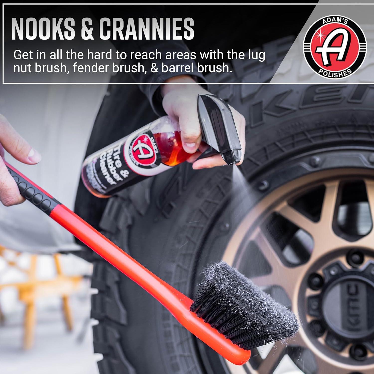 Adam’s Wheel & Tire Brush Kit (3-Item) – Includes Wheel Brush, Tire Brush & Barrel Brush for Cleaning Rubber, Plastic, Chrome, Metal, Aluminum, Rim & Spoke Surfaces(5-Item)